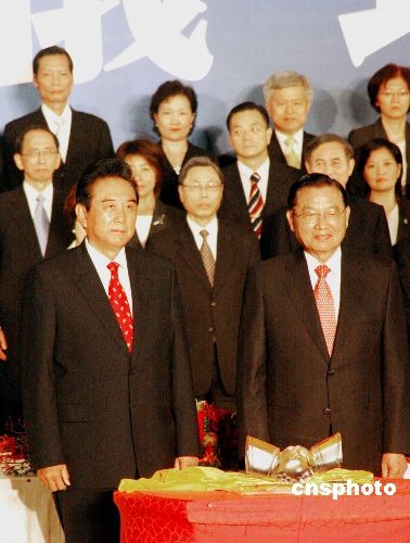 11月4日下午,海協(xié)會(huì)會(huì)長陳云林和;鶗(huì)董事長江丙坤簽署有關(guān)兩岸空運(yùn)直航、海運(yùn)直航、郵政、食品安全的4項(xiàng)協(xié)議。圖為協(xié)議文本簽署后,陳云林向江丙坤致贈(zèng)水晶作品《握手》。中新社發(fā) 黃少華 攝