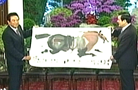 11月6日上午,馬英九與海協(xié)會(huì)會(huì)長(zhǎng)陳云林一行會(huì)面,并互贈(zèng)禮物。