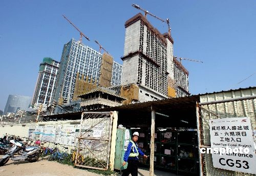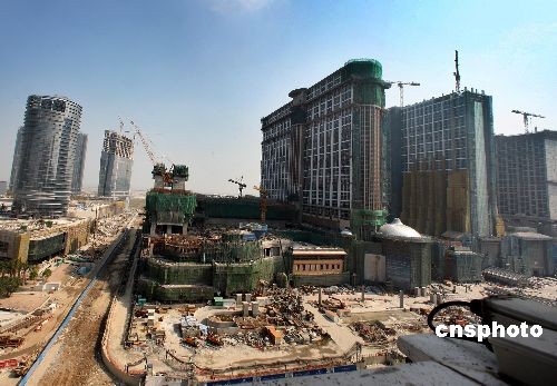 受世界金融海嘯的嚴(yán)重沖擊,澳門威尼斯人“金光大道五、六期項(xiàng)目”已經(jīng)全面停工,包括規(guī)模宏大的喜來登酒店在內(nèi)的多所大型建筑工地只有少量工人善后。中新社發(fā) 任晨鳴 攝