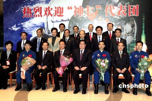 十二月六日,“神舟七號”載人航天飛行代表團拜會中央人民政府駐香港聯(lián)絡辦公室(中聯(lián)辦)。中新社發(fā) 張勤 攝