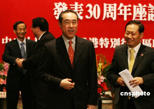 一月六日,紀(jì)念《告臺灣同胞書》發(fā)表三十周年座談會在香港會議展覽中心舉行,中央政府駐港聯(lián)絡(luò)辦主任高祀仁、香港特區(qū)政府政務(wù)司司長唐英年以及香港各界二百多人與會。中新社發(fā) 武仲林 攝