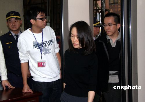 圖為下午二時約三十分,兩人抵地院時,有民眾在旁邊舉標語牌。 中新社發(fā) 陳立宇 攝