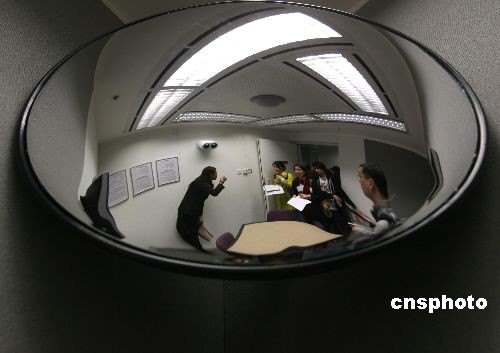 二月八日,工作人員向媒體介紹香港廉政公署的錄影會面室。今年是廉政公署成立三十五周年,為了加深香港市民對反貪工作的認(rèn)識,廉署將在本月舉辦兩個(gè)開放日,讓市民參觀廉政公署大樓的部分設(shè)施。中新社發(fā) 武仲林 攝