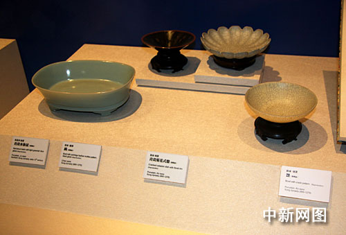 近日,為推廣臺(tái)北故宮“周末夜”活動(dòng),臺(tái)北故宮博物院在臺(tái)北火車站設(shè)置長箱型玻璃廣告廊,以高仿真度的館藏文物進(jìn)行宣介。圖為展示的仿宋代汝窯、建窯、哥窯瓷器。 中新社記者 陳立宇 攝