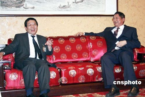 4月20日,天津商會(huì)會(huì)長(zhǎng)張?jiān)?右一)在天津會(huì)見(jiàn)前來(lái)參加津洽會(huì)的葡萄牙華人總會(huì)執(zhí)行長(zhǎng)周一平(左一)。中國(guó)·天津第16屆投資貿(mào)易洽談會(huì)備受?chē)?guó)外、境外機(jī)構(gòu)及客商關(guān)注,20多個(gè)國(guó)家和地區(qū)的2000多名境外客商參加了本屆津洽會(huì),參會(huì)人數(shù)超過(guò)往屆。來(lái)自世界各國(guó)及地區(qū)的政府、機(jī)構(gòu)、客商踴躍參加現(xiàn)場(chǎng)洽談,尋找合作商機(jī)。中新社發(fā) 金立冬 攝