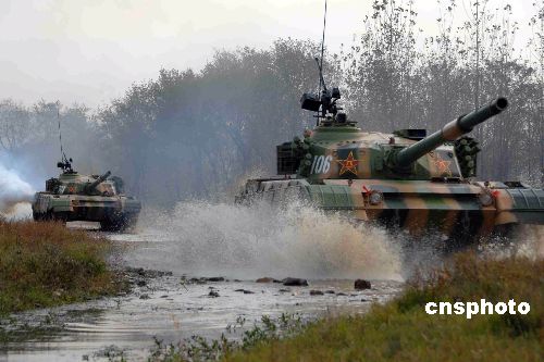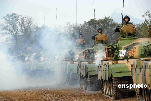 10月底,“鐵拳-2007”復(fù)雜電磁環(huán)境下機(jī)步師實(shí)兵檢驗(yàn)性演習(xí)完成電磁對(duì)抗,進(jìn)入實(shí)兵交戰(zhàn)階段。圖為裝甲部隊(duì)向演習(xí)地域集結(jié)。中新社發(fā) 周和平 攝