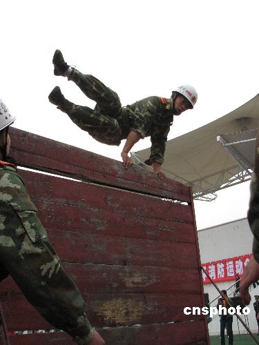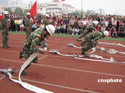 “119”消防安全宣傳日臨近,11月7日,山東棗莊公安消防支隊官兵到駐地棗莊學院,現(xiàn)場示范表演消防水帶連接、破拆搶險救援、百米翻越障礙、高空遇險救援等消防技能。中新社發(fā) 季龍 攝