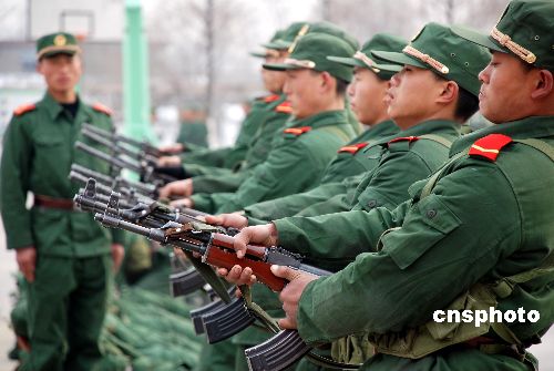 2008年2月2日,武警安徽總隊淮北支隊的新戰(zhàn)士正在進(jìn)行冬季訓(xùn)練。為了確保武警部隊在復(fù)雜惡劣的環(huán)境中隨時能拉得出、打得贏,連日來,武警安徽總隊淮北支隊針對駐地天寒地凍這一情況,通過冬練三九,盡快提高新戰(zhàn)士的軍事素質(zhì)和戰(zhàn)斗力。中新社發(fā) 謝正義 攝