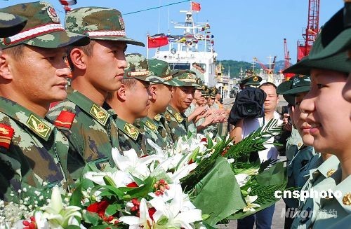 8月26日,浙江邊防總隊舉行儀式,歡迎執(zhí)行青島奧帆賽海上安全保衛(wèi)任務歸來的浙江邊防海警官兵。中新社發(fā) 何蔣勇 攝