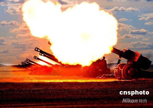 中國(guó)人民解放軍濟(jì)南軍區(qū)參加“礪兵--2008”演練的部隊(duì),日前已經(jīng)集結(jié)完畢,部隊(duì)全部進(jìn)入臨戰(zhàn)狀態(tài)。9月12日該軍區(qū)炮兵旅進(jìn)行臨戰(zhàn)前的實(shí)彈訓(xùn)練。中新社發(fā) 宋吉河 攝