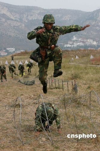 10月18日,濟(jì)南軍區(qū)偵察兵動(dòng)態(tài)比武展開。滿臉油彩的偵察隊(duì)員們身負(fù)35公斤戰(zhàn)斗裝具行軍50公里,主要進(jìn)行了夜間行軍、操舟越障、通過雷場(chǎng)、偵察報(bào)知、調(diào)制要圖、山地攀登六項(xiàng)課目考核。中新社發(fā) 崔成俊 攝