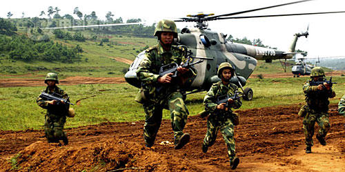 圖:成都軍區(qū)某部與陸航部隊協(xié)同演練