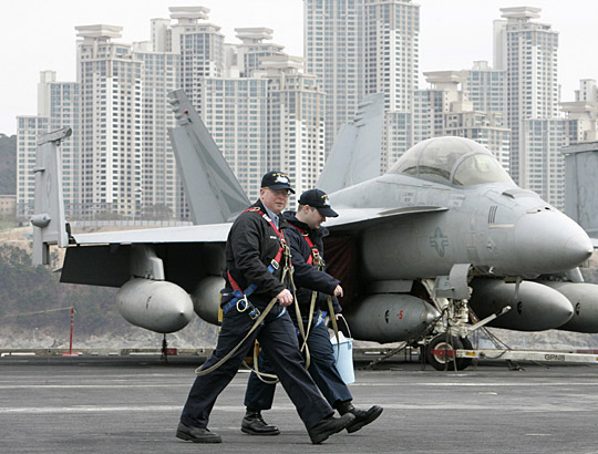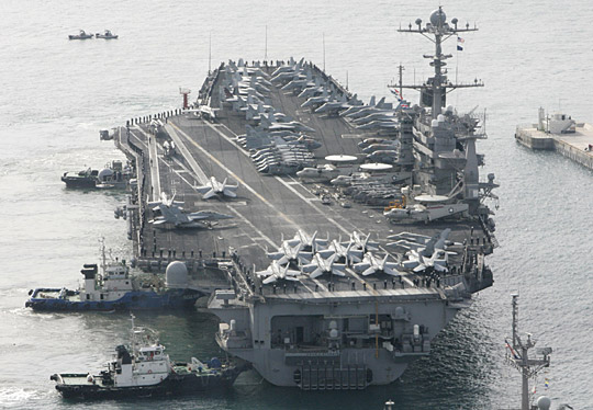 中新網(wǎng)3月11日電 據(jù)韓聯(lián)社報(bào)道,將參加韓美“關(guān)鍵決斷”聯(lián)合軍演的美國第3艦隊(duì)核動(dòng)力航母“約翰·斯坦尼斯”號(hào)(9.6萬噸),11日上午抵達(dá)了釜山海軍作戰(zhàn)司令部基地。