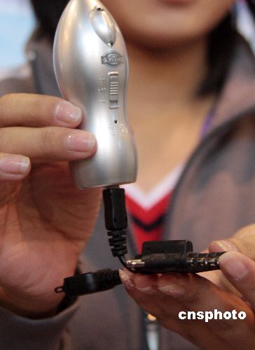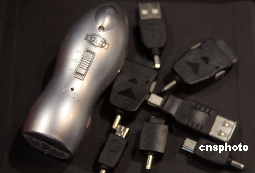 10月16日,USB移動(dòng)電源亮相北京第二屆國(guó)際網(wǎng)絡(luò)安全技術(shù)與應(yīng)用展。該USB移動(dòng)電源外形酷似小手電筒,含電池的重量是約為80g,當(dāng)用戶在外出遠(yuǎn)行的時(shí)候,能夠?qū)⒏呻姵刈鳛殡娫礊槭謾C(jī)、相機(jī)電池等應(yīng)急充電。中新社發(fā) 吳芒子 攝