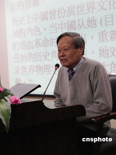 12月2日,著名美籍華人物理學(xué)家楊振寧在南開(kāi)大學(xué)以《1957年宇稱不守恒在物理界所引起的震蕩》為題,發(fā)表演講。演講中,楊振寧回顧了宇稱不守恒定律問(wèn)世前后的細(xì)節(jié),以及此后的進(jìn)展。他強(qiáng)調(diào),從事科學(xué)研究“要有眼光、有能力、能堅(jiān)持”。50年前,楊振寧與李政道因發(fā)現(xiàn)宇稱不守恒定律而成為首獲諾貝爾獎(jiǎng)的華人。中新社發(fā) 田齊 攝