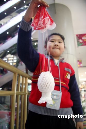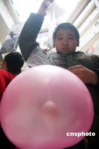 12月24日,來自沈陽(yáng)市12所小學(xué)的100多名小學(xué)生在太原街的東順百貨商店的共享大廳內(nèi)玩起了領(lǐng)人矚目的“雞蛋撞地球”的大賽。這次比賽是沈陽(yáng)晚報(bào)主辦的,旨在提高小朋友們的動(dòng)腦動(dòng)手的能力及開發(fā)他們的想象力,讓小朋友們利用一切可以利用的設(shè)備及材料,做出各種“設(shè)備”保護(hù)雞蛋從高空中墜下撞到地面后不破損。誰(shuí)使用的“設(shè)備”最輕誰(shuí)就獲勝,最后有三名小同學(xué)以1.2克的同樣重量獲得并列第一名。中新社發(fā) 趙敬東 攝