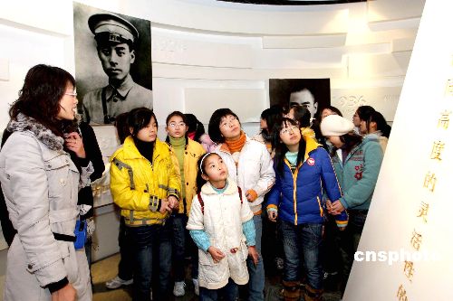 浙江紹興的中學(xué)生們?cè)谥芏鱽?lái)紀(jì)念館參觀。