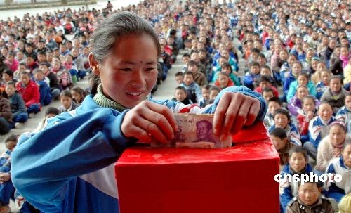 拉薩市中學(xué)師生向“3•14”事件受害群眾捐款