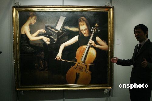 四月五日,中國(guó)嘉德二零零八春季拍賣巡展在香港舉行,八十年代陳逸飛音樂(lè)題材肖像作品系列之一的《二重奏》估價(jià)八百萬(wàn)至一千萬(wàn)元人民幣。中新社發(fā) 武仲林 攝