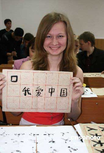 5月7日,應(yīng)俄羅斯布拉戈維申斯克市國(guó)立師范大學(xué)孔子學(xué)院邀請(qǐng),黑河學(xué)院的兩位書(shū)法教師到孔子學(xué)院,向俄羅斯學(xué)生講解并傳授中國(guó)傳統(tǒng)書(shū)法藝術(shù)。據(jù)悉,此次活動(dòng)是為慶祝俄羅斯布拉戈維申斯克市國(guó)立師范大學(xué)孔子學(xué)院成立一周年而舉辦。中新社發(fā) 邱齊龍 攝
