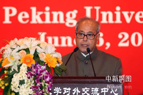 圖:印度外交部部長穆克吉在北大發(fā)表演講