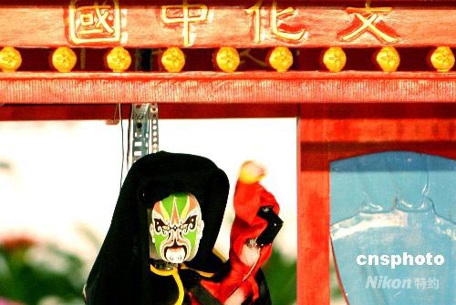 7月17日,蘇州碧波實驗小學(xué)參賽機器人表演“川劇變臉”。當(dāng)日,在蘇州國際博覽中心舉辦的“RoboCup 2008機器人世界杯賽”青少年組機器人跳舞比賽場上,來自蘇州碧波實驗小學(xué)參賽的“川劇變臉機器人”引人入勝。一個身披黑袍的機器人隨著川味十足的《唱臉譜》音樂,登臺表演2分鐘共變換了6張“川劇臉譜”。中新社發(fā) 蘇秀 攝