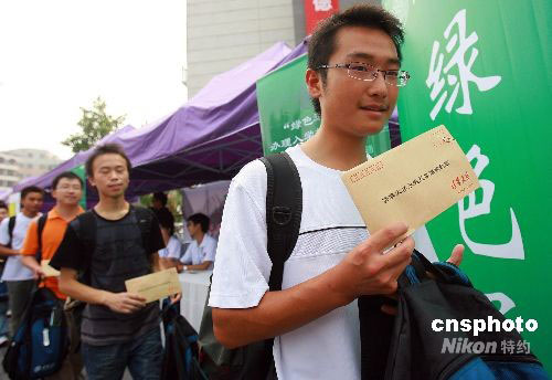 2008年8月28日,新學(xué)期伊始,清華大學(xué)為來自災(zāi)區(qū)的學(xué)子開辟“綠色通道”,營造家庭般的溫馨氛圍。中新社發(fā) 張學(xué)軍 攝