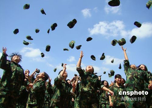 全國各高校新生一開學(xué)便開始大學(xué)“第一堂課”——軍訓(xùn)。揚(yáng)州大學(xué)文學(xué)院針對194名“90后”大一新生,提出了“快樂軍訓(xùn)”的口號,除了為期10多天的正常軍事訓(xùn)練外,學(xué)院還開展了趣味游戲、“軍花”評比、內(nèi)務(wù)競賽等活動,為新生的軍訓(xùn)生活增添了一份樂趣,同時促進(jìn)彼此間的認(rèn)識和了解。中新社發(fā) 陳中秋 攝
