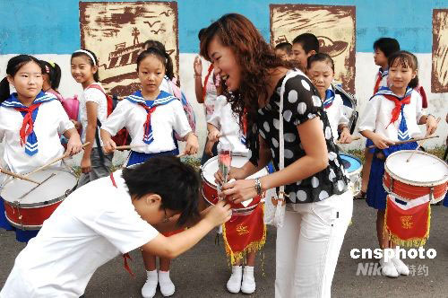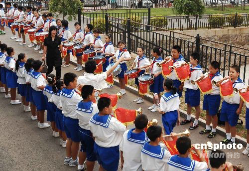 9月10日早上,在遼寧省大連市甘井子區(qū)金二小學(xué)學(xué)校門前,鼓樂喧天,學(xué)生們將鮮花獻(xiàn)給每位老師,表達(dá)對老師的節(jié)日祝福。當(dāng)日是我國第24個(gè)教師節(jié),各地院校師生開展多種形式的活動,慶賀教師節(jié)。中新社發(fā) 劉德斌 攝