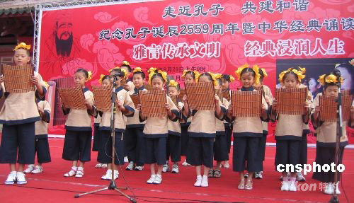 九月二十九日上午,為紀念孔子誕辰二千五百五十九周年,一場大型的中華經典誦讀活動在福建泉州府文廟廣場舉行,旨在弘揚和傳承中華優(yōu)秀民族文化,倡導尊師重教風尚。中新社發(fā) 黃瑤瑛 攝