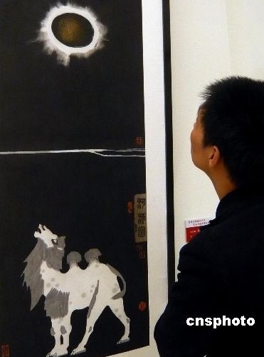 10月14日,在北京中國美術(shù)館展出的“首屆中國城市藝術(shù)書畫家提名展”吸引參觀者,該展由中國城市發(fā)展研究會城市藝術(shù)專業(yè)委員會主辦,展覽匯集了中國當下具有較高藝術(shù)成就的書畫家的作品,旨在提升全國城市文化品味,促進書畫家走向社會,服務于社會,是當代書畫家參與經(jīng)濟發(fā)展,城市建設,傳承民族文化的橋梁和紐帶。圖為展覽作品之一《大漠長河》。中新社發(fā) 錢興強 攝