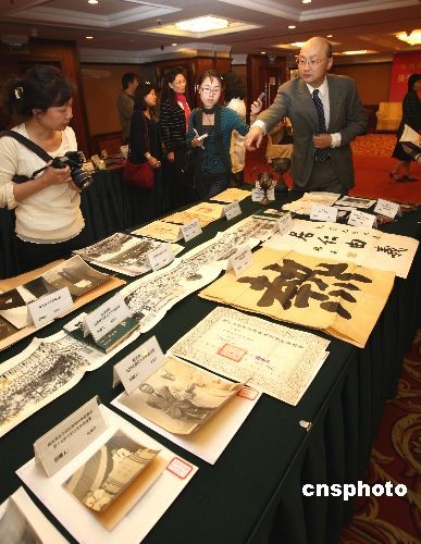 十月十六日,四百余件華僑華人捐贈的藏品首次在北京華僑飯店亮相。由中國華僑歷史博物館接受的這些藏品反映了上個世紀海外華僑生存和發(fā)展的歷史,見證了華僑華人與祖國共命運,共發(fā)展的史實。目前,中國華僑歷史博物館正在籌建中。中新社發(fā) 史利 攝