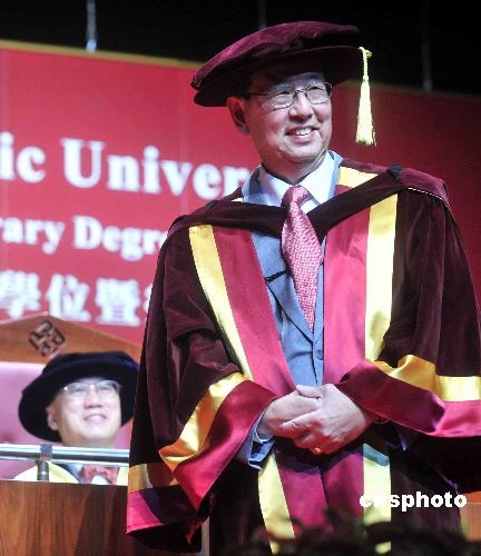香港金利來集團(tuán)董事會主席、前全國人大常委曾憲梓,十月二十三日,獲香港理工大學(xué)頒授榮譽(yù)社會科學(xué)博士學(xué)位。中新社發(fā) 譚達(dá)明 攝