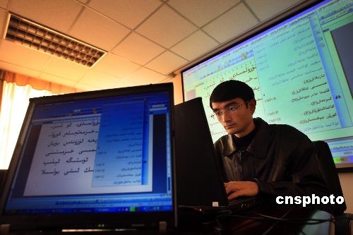 11月19日,中國科學(xué)院新疆理化技術(shù)研究所的工作人員正在展示該所投資100多萬元人民幣,耗時3年開發(fā)完成的維哈柯文辦公軟件。據(jù)了解,該軟件是針對新疆少數(shù)民族語言文字特點(diǎn)與信息處理應(yīng)用的需求,而研發(fā)的維哈柯文辦公軟件,具有多語種(維、哈、柯、漢、英)、跨平臺(國產(chǎn)Linux和Windows平臺)、兼容性好、具有自主知識產(chǎn)權(quán)的多語種辦公套件。該軟件研發(fā)完成后進(jìn)入市場化運(yùn)作,已實現(xiàn)經(jīng)濟(jì)效益500多萬元人民幣,并對新疆60多個縣市,6000多名少數(shù)民族使用者進(jìn)行了培訓(xùn)。中新社發(fā) 劉新 攝