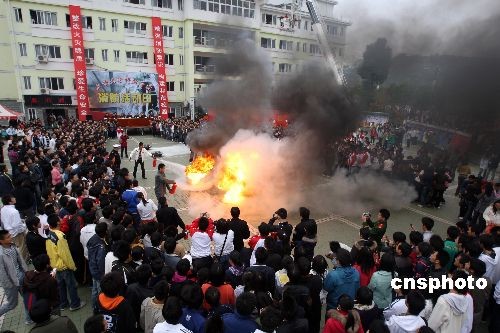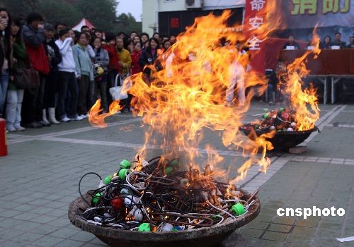 為汲取上海商學(xué)院“11.14”重大火災(zāi)事故教訓(xùn),11月22日上午,湖北三峽大學(xué)舉行了消防安全宣傳活動(dòng)。組織學(xué)校師生開(kāi)展了滅火逃生疏散演練,現(xiàn)場(chǎng)還對(duì)收繳的1000余支“熱得快”進(jìn)行銷(xiāo)毀,提高師生的消防安全意識(shí)。中新社發(fā) 方佩 攝