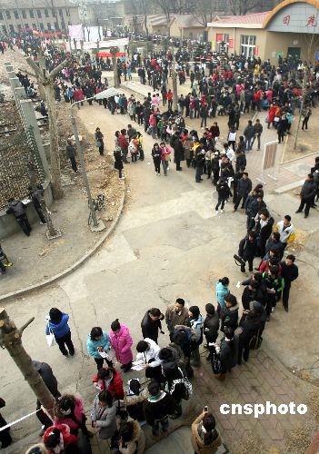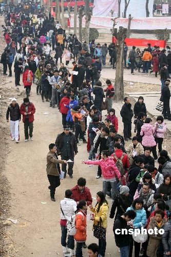 2月4日,成千上萬的考生從山東各地趕赴濟(jì)南報(bào)名參加省外院校藝術(shù)類專業(yè)考試。當(dāng)日,濟(jì)南鐵道職業(yè)技術(shù)學(xué)院內(nèi)的藝考報(bào)名現(xiàn)場(chǎng),迎來首個(gè)藝考高峰日,天津體育學(xué)院、西南大學(xué)等8個(gè)院校的報(bào)名點(diǎn)前人頭攢動(dòng),等待報(bào)名的考生排起了百米長(zhǎng)的隊(duì)伍。不少考生和家長(zhǎng)清晨6點(diǎn)就趕來排隊(duì)。中新社發(fā) 王鋒鋒 攝