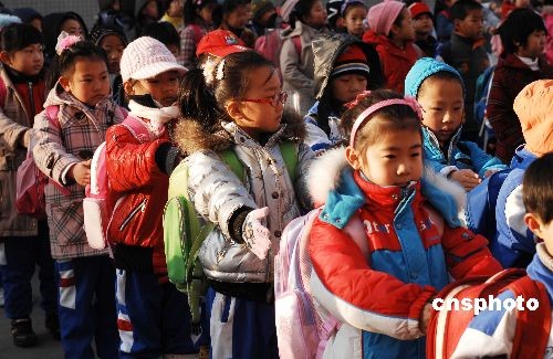 3月2日早,大連鵬輝小學(xué)的學(xué)生們在操場列隊。當日,寒假過后,遼寧大連市中小學(xué)2008-2009學(xué)年度第二學(xué)期開學(xué)上課。中新社發(fā) 劉德斌 攝