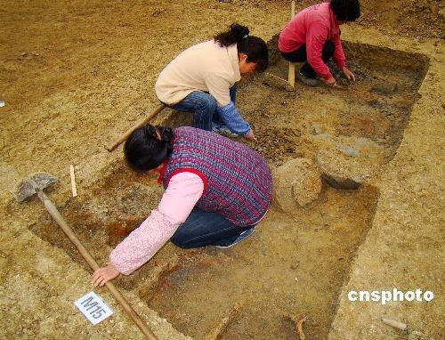 3月4日,成都市文化考古隊目前在成都郊區(qū)雙流華陽發(fā)掘出二十六座漢代、唐宋時期古墓。目前該古墓群正在進行先期發(fā)掘,已出土了數枚漢代王莽時期用過的“貨布”、“貨泉”等古錢幣。其中漢代早期土坑墓為十座、磚室墓八座;唐、宋時期磚室墓八座。圖為工作人員正在對古墓進行發(fā)掘。中新社發(fā) 王萌 攝