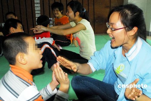 2009年4月2日是第2個世界自閉癥日,海南省海口市各家特教培訓(xùn)機(jī)構(gòu)紛紛開展家長聯(lián)誼、趣味游戲等活動,讓親情和訓(xùn)練相結(jié)合敲開自閉癥孩子的“心門”。自閉癥也稱孤獨癥,是以嚴(yán)重孤獨、缺乏情感反應(yīng)、語言發(fā)育障礙、刻板重復(fù)動作和對環(huán)境的奇怪反應(yīng)為特征的精神疾病。據(jù)統(tǒng)計,目前中國約有各類自閉癥患者150萬人,其中兒童約有50萬人左右。中新社發(fā) 善平 攝