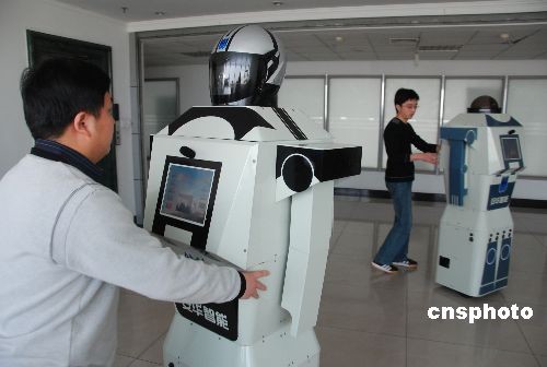 4月18日,濰坊(山東)安華智能公司工作人員展示“團團”“圓圓”智能機器人。由山東安華智能公司自主研發(fā)的一男一女兩款智能機器人身長分別為170、166厘米、體重各50公斤,男的名叫“團團”,女的名的“圓圓”。他們不但會跳舞,能自主靈活行走,并且具備與人交談、識別人臉和信息推介等諸多功能。據(jù)悉,“團團”“圓圓”將亮相第26屆濰坊風箏會,并承擔迎賓任務。 中新社發(fā) 孫樹寶 攝