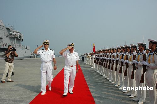 10月19日上午10時,新西蘭海軍“特卡哈”(Te Kaha)號護(hù)衛(wèi)艦(舷號F77)在新西蘭海上聯(lián)合作戰(zhàn)部隊司令大衛(wèi)·安森(David Anson)準(zhǔn)將的率領(lǐng)下,駛抵中國海軍湛江軍港,開始對南海艦隊進(jìn)行為期3天的友好交流。中方南海艦隊副參謀長么志樓少將在碼頭舉行儀式,歡迎新艦首次訪問湛江。中新社發(fā) 李根成 攝