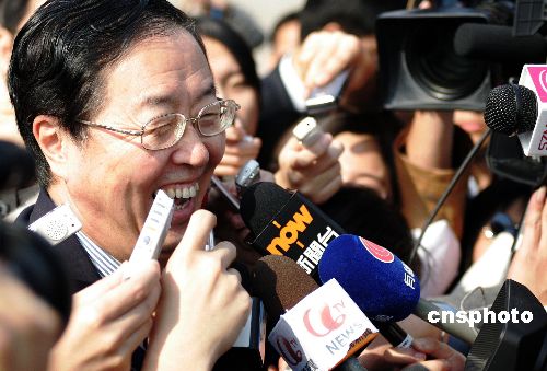 中國共產(chǎn)黨第十七次全國代表大會(huì)10月21日上午在北京人民大會(huì)堂閉幕。大會(huì)選舉產(chǎn)生了新一屆中央委員會(huì)和中央紀(jì)律檢查委員會(huì)。圖為當(dāng)選新一屆中央委員會(huì)委員的央行行長周小川在大會(huì)堂外被記者“圍攻”。中新社發(fā) 任晨鳴 攝
