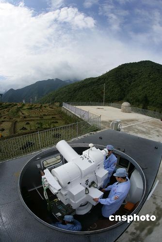 10月22日,西昌衛(wèi)星發(fā)射中心技術(shù)人員調(diào)試跟蹤火箭前期軌道的光學(xué)經(jīng)緯儀。中國國防科工委當(dāng)晚在北京宣布,“嫦娥一號”衛(wèi)星將于24日至26日在西昌衛(wèi)星發(fā)射中心擇機發(fā)射,首選發(fā)射窗口為24日18時左右。中新社發(fā) 秦憲安 攝