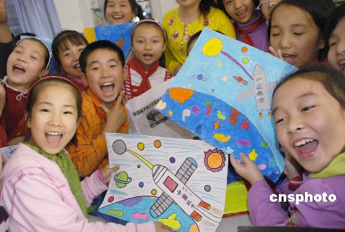10月25日,安徽省蕪湖市范羅山小學(xué)開(kāi)展 “巧手繪‘嫦娥’圓我飛天夢(mèng)”活動(dòng),科技輔導(dǎo)員用繪畫(huà)、模型、報(bào)紙等形式向小學(xué)生講解“嫦娥一號(hào)”飛天探月知識(shí),圓小學(xué)生飛天夢(mèng)。中新社發(fā) 老春 攝