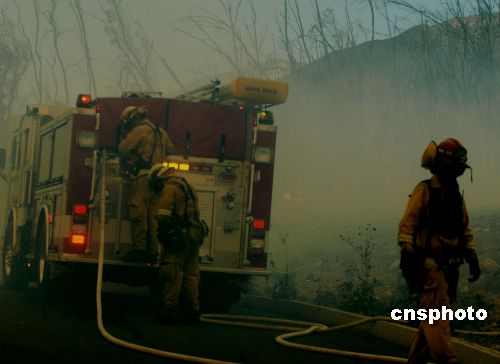 十月二十六日,美國(guó)加州大火第六天,消防員基本撲滅洛杉磯十四處山火,準(zhǔn)備轉(zhuǎn)戰(zhàn)依然燃燒的圣地牙哥和橙縣,那里災(zāi)情依然嚴(yán)峻。中新社發(fā) 賈國(guó)榮 攝