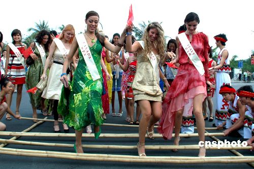 十一月十七日,參加第五十七屆世界小姐總決賽的一百多位佳麗參加了海南島歡樂節(jié)三亞分會(huì)場(chǎng)的活動(dòng),并在三亞市區(qū)巡游,與市民和游客們共享歡樂。中新社發(fā) 尹海明 攝