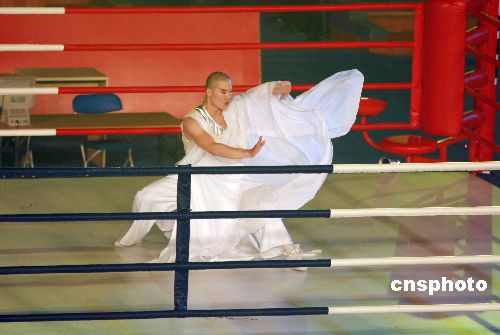 圖為開(kāi)幕式上的武術(shù)表演。中新社發(fā) 廖文靜 攝