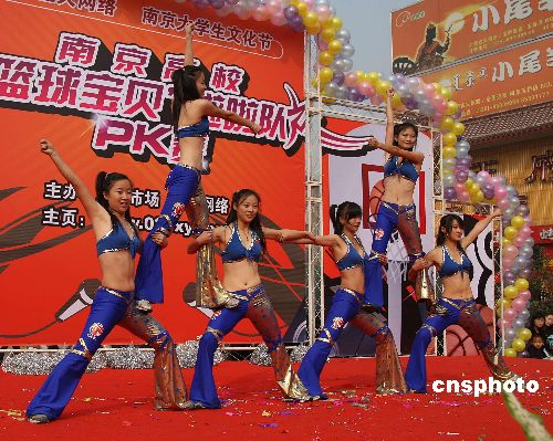 11月24日,南京高!盎@球?qū)氊悺崩怖碴?duì)PK賽在南京舉行,來自南京十所高校的“籃球?qū)氊悺崩怖碴?duì)一一登臺,展示青春活力。經(jīng)過激烈角逐,南京林業(yè)大學(xué)、南京中醫(yī)藥大學(xué)、東南大學(xué)三支“籃球?qū)氊悺崩怖碴?duì)分獲前三名。中新社發(fā) 文寶 攝