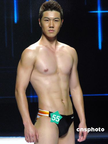 11月24日,2007中國模特之星全國總決賽在廣西舉行第二場比賽。30名男選手進行了泳裝和晚裝的比賽,比賽淘汰10位男選手,決出4個單項獎,分別是:最佳T臺表現(xiàn)獎(寧夏賽區(qū)的43號選手保鍇獲得)、最佳身材獎(北京賽區(qū)的49號選手麗卓獲得)、最具活力獎(北京賽區(qū)的31號選手高鵬獲得)、最上鏡獎(山東賽區(qū)的60號選手史運鵬獲得)。中新社發(fā) 駱文剛 攝
