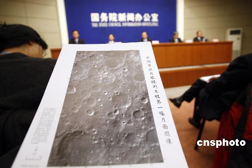 11月26日下午,繞月探測工程領(lǐng)導(dǎo)小組副組長、國防科工委副主任、航天局局長孫來燕(中),繞月探測工程測控系統(tǒng)副總指揮、北京航天飛行控制中心主任朱民才(左二),繞月探測工程副總指揮、航天科技集團(tuán)公司副總經(jīng)理雷凡培(右二),中國科學(xué)院空間科學(xué)與應(yīng)用中心主任吳季(右)以及國新辦新聞局副局長華清(左),在國務(wù)院新聞辦公室舉行的新聞發(fā)布會(huì)上,共同慶祝中國首次月球探測工程的圓滿成功。當(dāng)日,國務(wù)院新聞辦公室邀請中國繞月探測工程領(lǐng)導(dǎo)小組副組長、國防科工委副主任、國家航天局局長孫來燕等介紹中國首次月球探測工程等方面情況,并答記者問。中新社發(fā) 杜洋 攝
